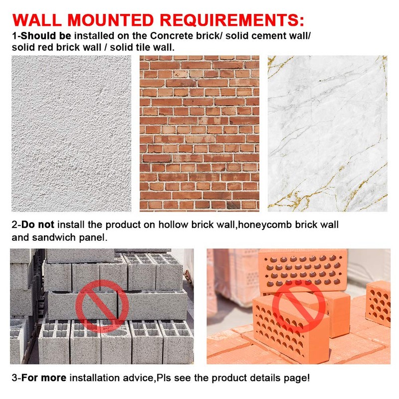 - WALL MOUNTED REQUIREMENTS: Concrete brick/solid cement wall/solid red brick wall /solid tile wall are a great surface for mounting this pull up bar and dip station. DON'T install on hollow brick wall/honeycomb brick wall/drywall /sandwich panel.