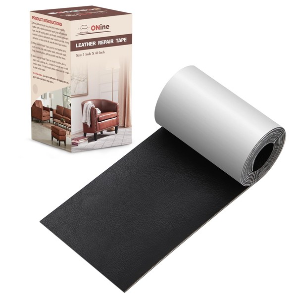 ONine Leather Repair Tape,Self Adhesive Leather Repair Patch,Leather Patches for Furniture,Sofa,Car Seats,Office Chair. Vinyl Repair Kit 3x60in (Black)