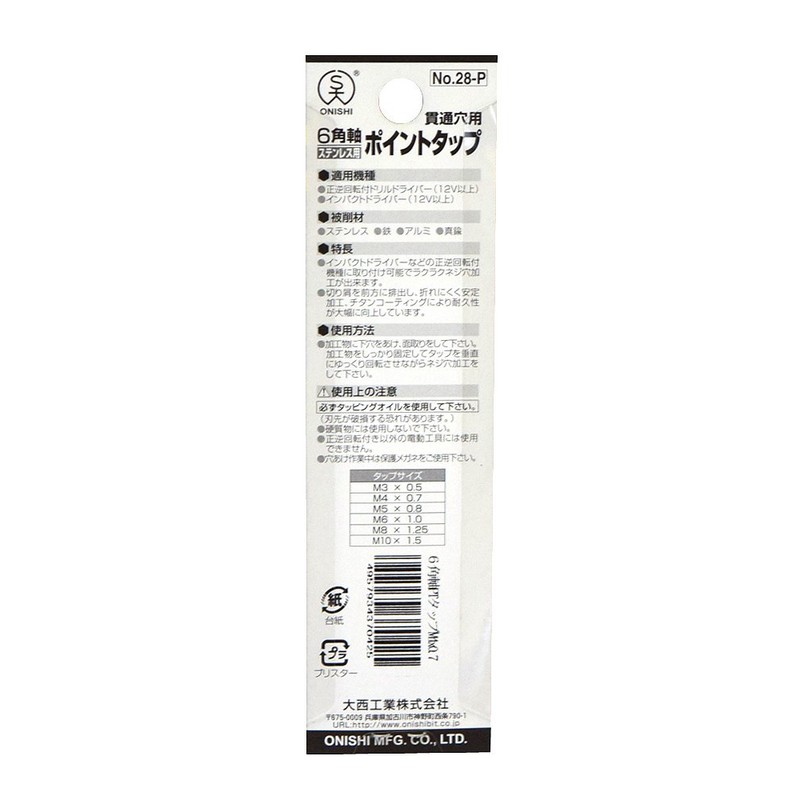 Onishi Kogyo Hexagonal Shaft Point Tap, M4 x 0.7