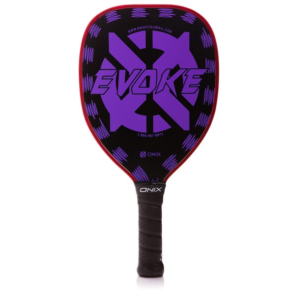 Onix Graphite Evoke Tear Drop Pickleball Paddle Features Tear Drop Shape, Polypropylene Core, and Graphite Face, Purple