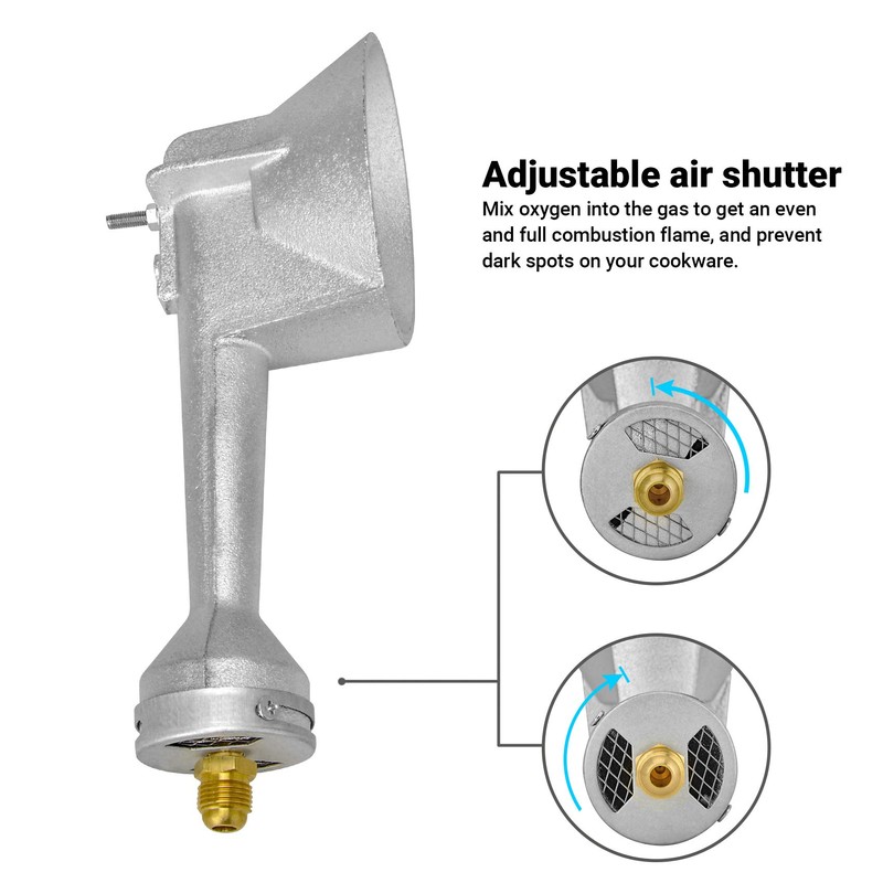 - 【Air shutter for better ventilation】With air shutter, which is better ventilation to the propane can thorough combustion and prevent your cooker from dark spotting.