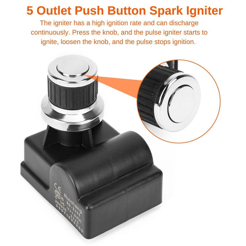 - Package Include: 1x 5 Outlets Push Button Igniter and 6 x Ignitor Wire (Battery not include)