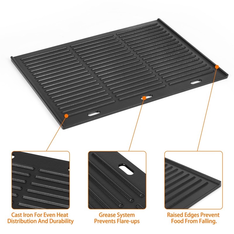Onlyfire Universal Cast Iron Griddle, Reversible Cooking Griddle for Gas/Charcoal Grills, 17.9" x 13.8"