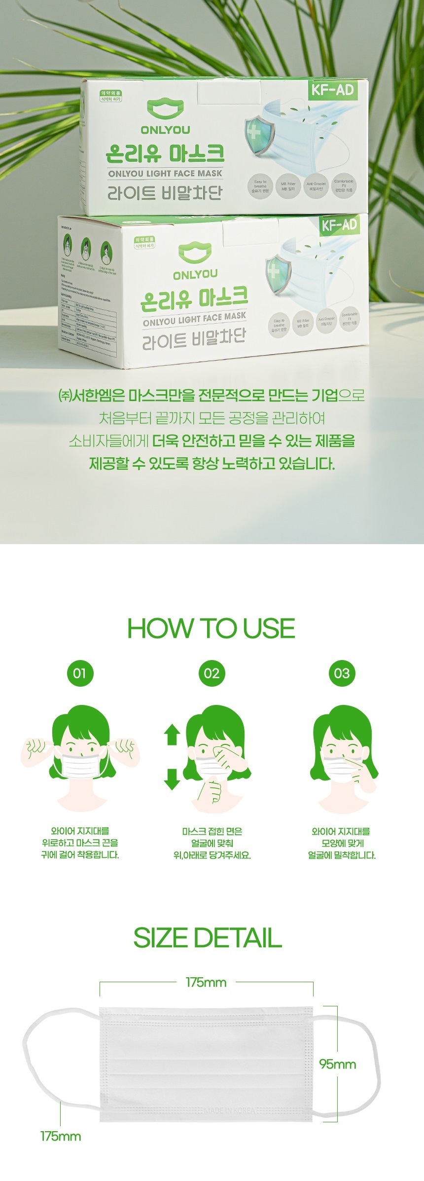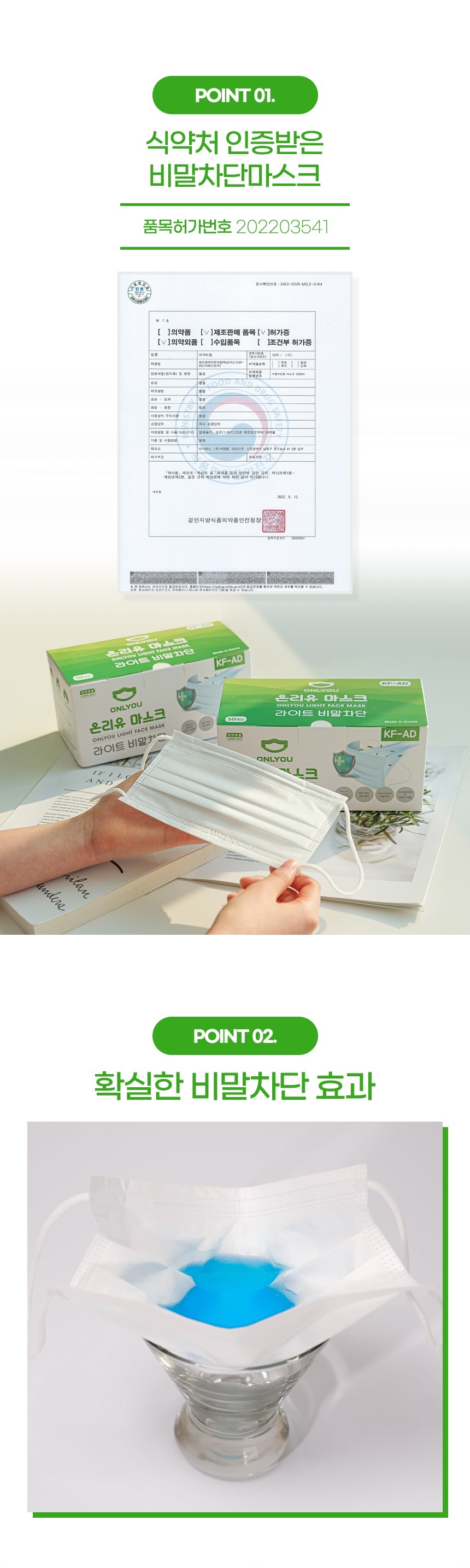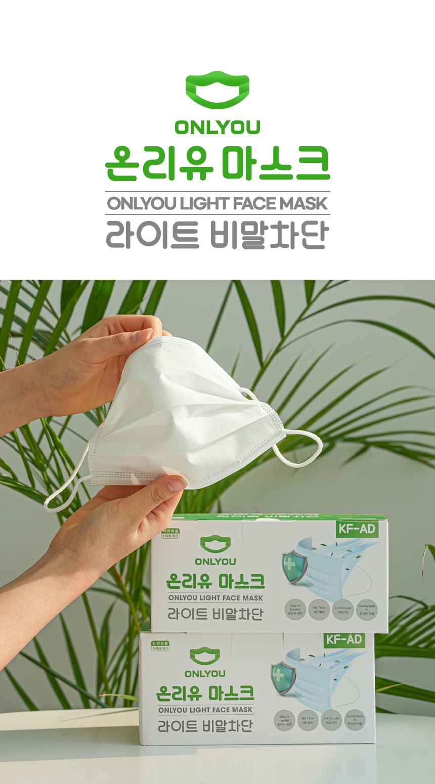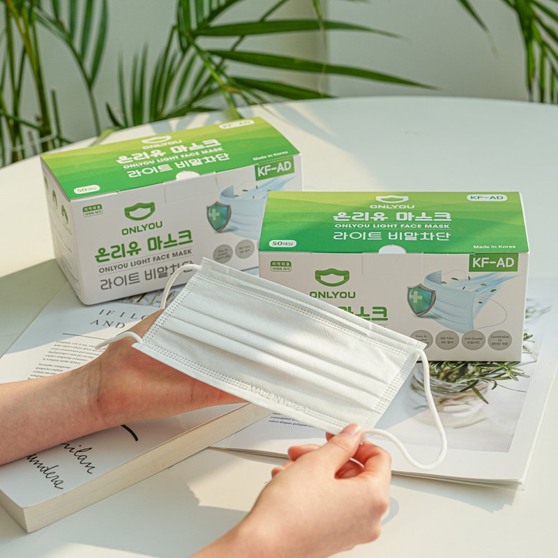 OnlyU Domestic Dental Droplet Blocking Disposable Mask Light KFAD 50 sheets / 온리유 국산 덴탈 비말차단 일회용 마스크 라이트 KFAD 50매