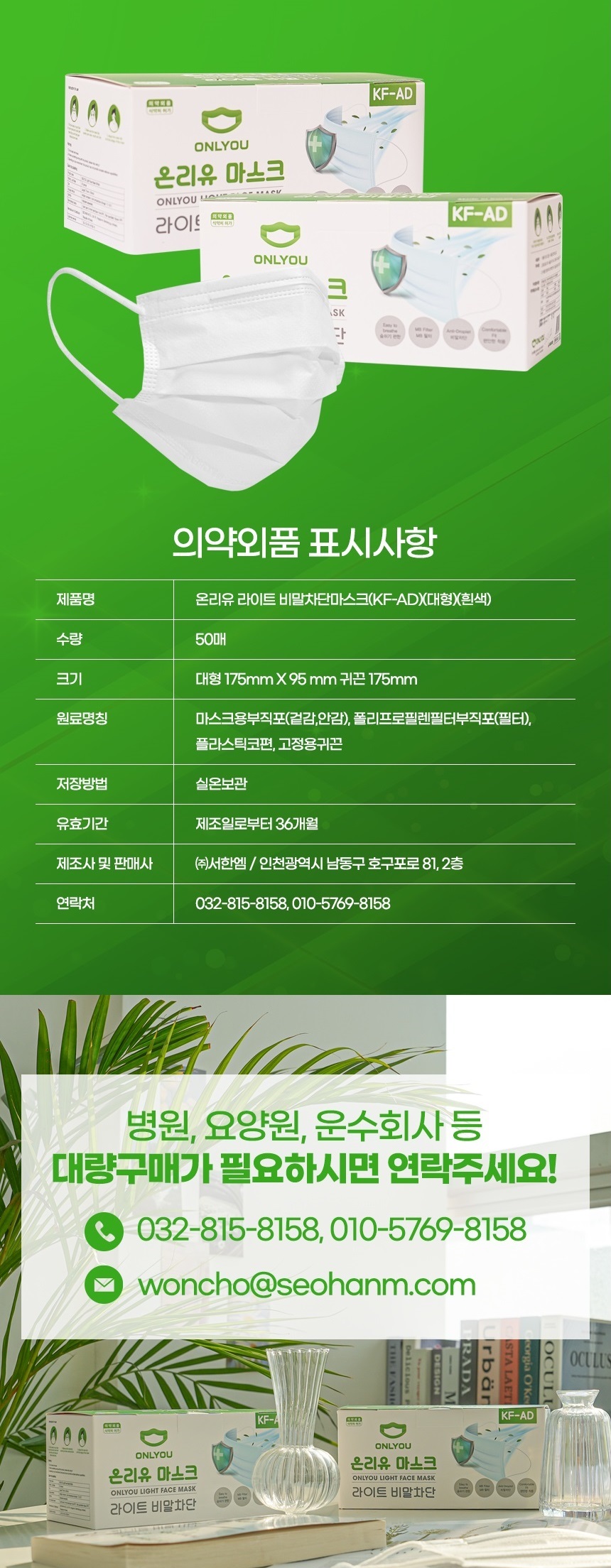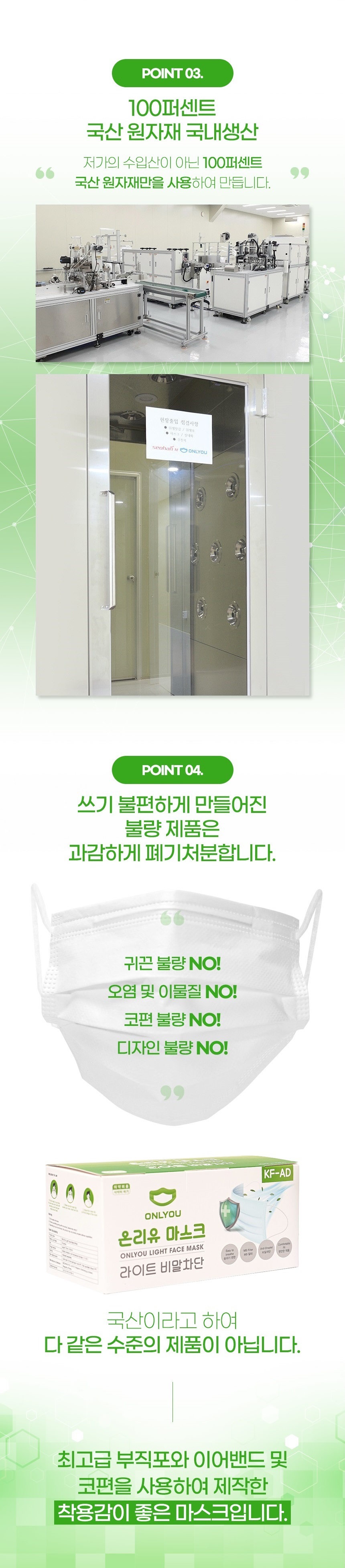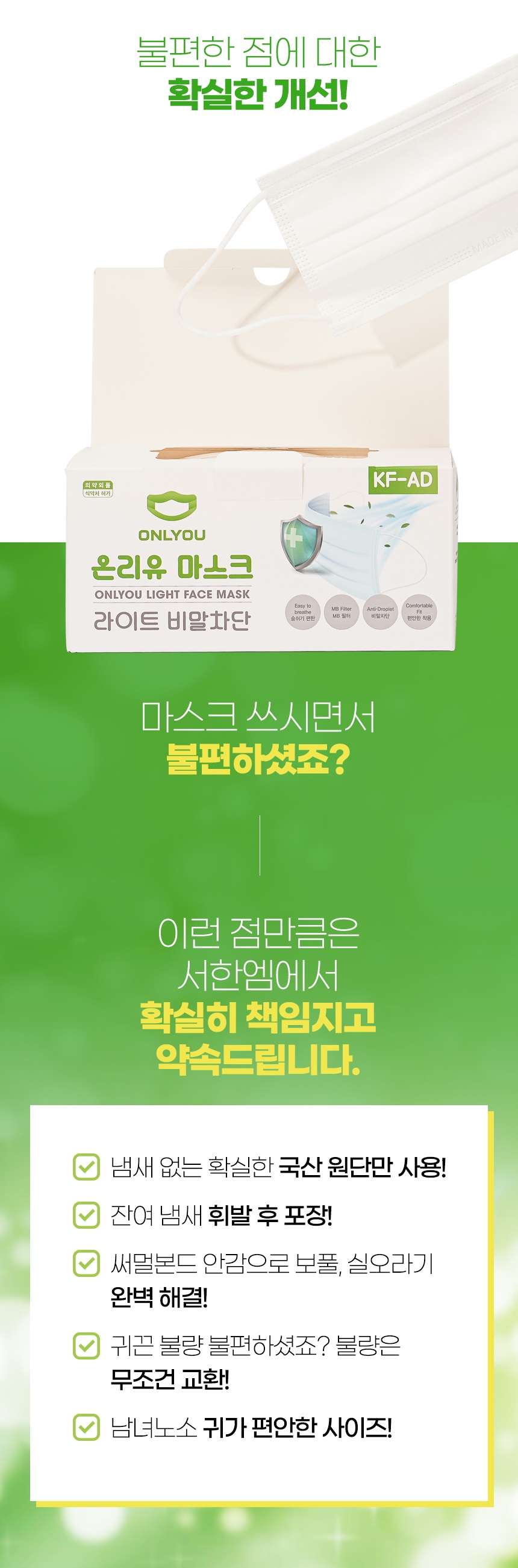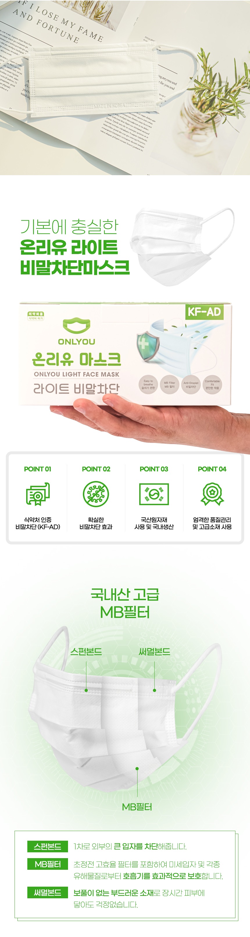 OnlyU Domestic Dental Droplet Blocking Disposable Mask Light KFAD 50 sheets / 온리유 국산 덴탈 비말차단 일회용 마스크 라이트 KFAD 50매