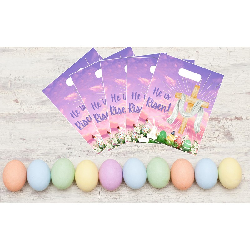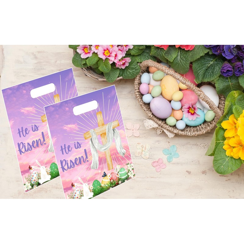 Onmlkkd 50 Pack He is Risen Bags for Kids Large 12''x10'' Religious Easter Bags Christian Easter Gift Bags for Goodies for Eggs Bulk Treat Bags