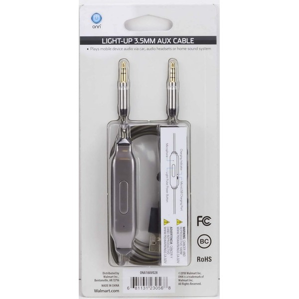 ONN EL-1414B Pilot Automotive 4' Light Up Aux Cable