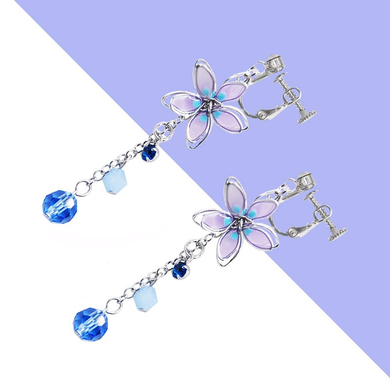 ONNFMH 18k Clip-on Dangling Earrings (No Pierce Earrings), Floral, Japanese Style, Women's, Popular