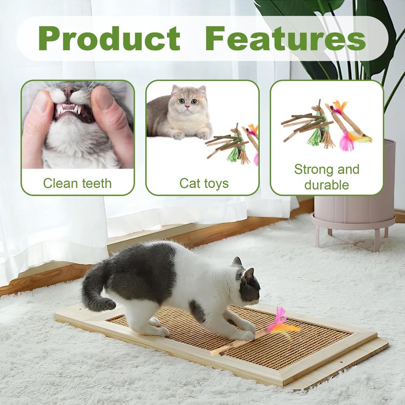 - 【Strong and Durable】The silvervine for cats is made of hemp rope, which is strong and durable, can be chewed by cats for a long time, and is not easy to fade. However, someone needs to supervise them when playing to prevent them from accidentally eating feathers.