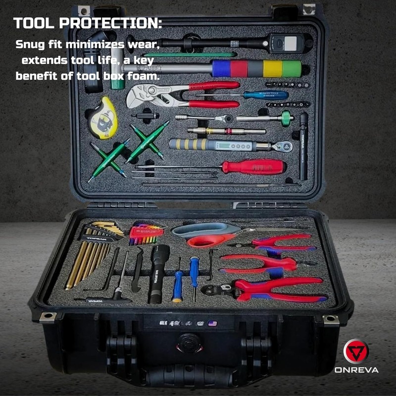 - PROTECTS TOOLS & TOOLBOX: The tool box foam provides cushioning and protection to your valuable tools, preventing potential impacts and keeping them safe during transit or storage. The toolbox foam organizer inserts provide designated spots for each tool, preventing them from colliding with each other and making it easy for you to access them when needed, saving you time and effort.