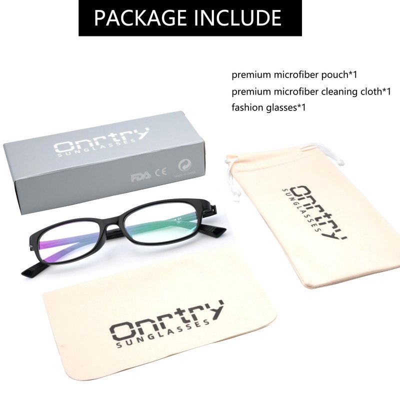 Onrtry Fake Clear Glasses Non Prescription Eyeglasses Rectangular Frame Eyewear(Bright Black)
