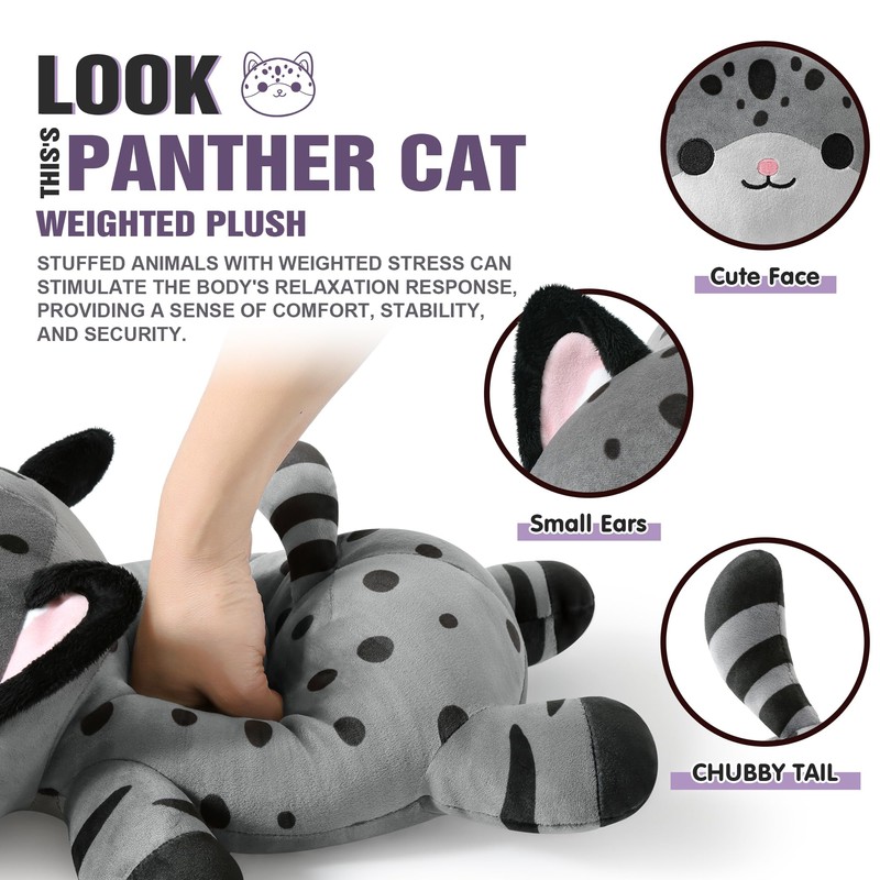 - Weighted Stuffed Animal Gift: Ideal for birthdays, holidays, and special occasions. Surprise your loved ones with a unique and heartwarming birthday panther weighted cat plushie toy.Part of an exclusive collection, making it a must-have for enthusiasts and collectors of weighted kitty stuffed animals.