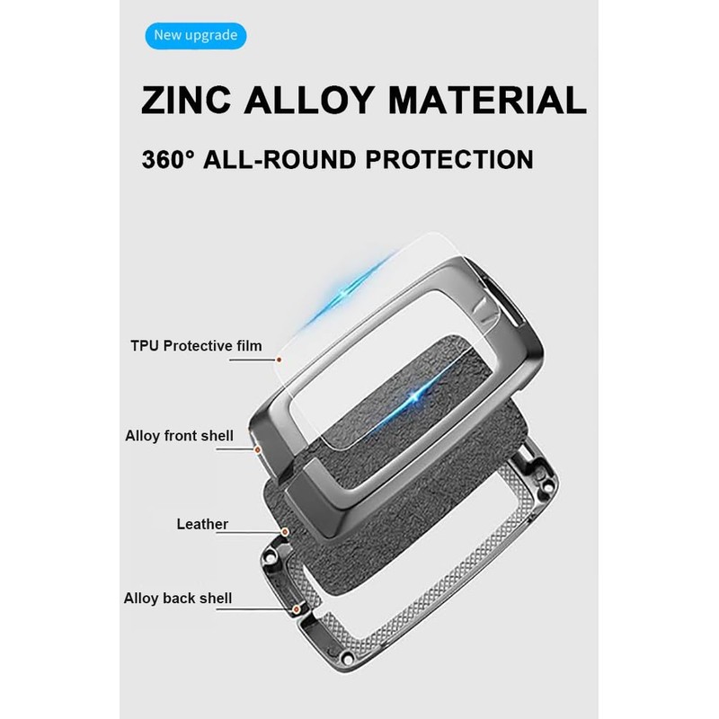 - 【CAR KEY PROTECTOR】-This car key case is made of high quality zinc alloy and cowhide. Zinc alloy is hard and sturdy casing, has a certain thickness, and has strong impact resistance, anti-falling, which protects your auto keys from damage, dust and scratches. Provides double protection for your car key and prevents the car key from scratching.
