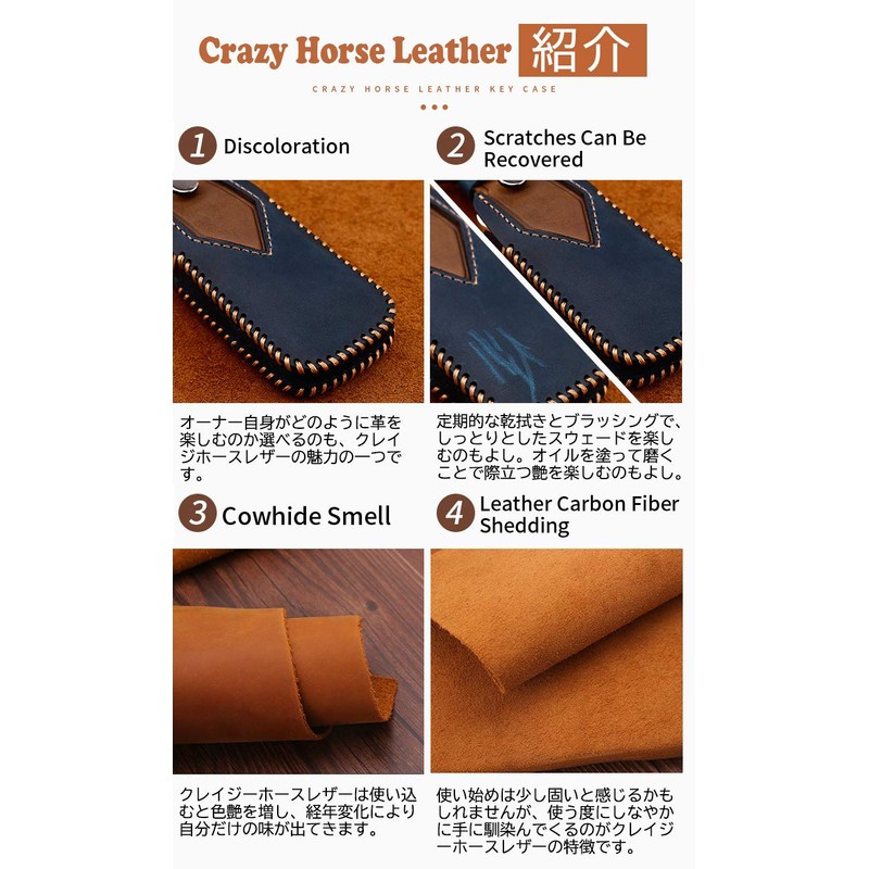 - Material: Made of high quality crazy horse leather. The smart key case uses a hollow design that does not block radio waves, so it does not interfere with the signal, so you can use it with confidence. The logo is perforated so that it is designed with the owner's mind in mind to avoid covering up the important logo