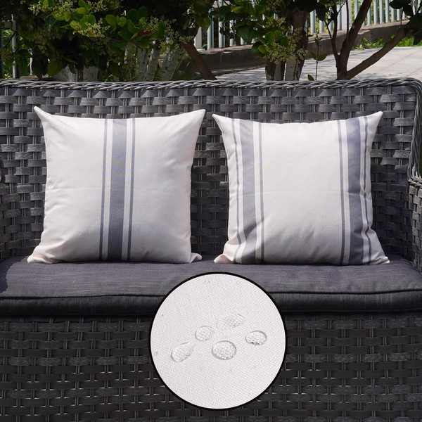 ONWAY Outdoor Pillow Covers Waterproof 18x18 Set of 2 Decorative Linen Throw Pillow Cover Beige and Grey Striped Outdoor Pillows for Patio Furniture