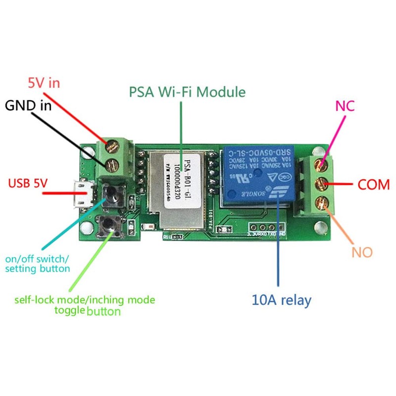 Onyehn for SONOFF USB 5V DIY 1 Channel Jog Inching Self-Locking WiFi Wireless Smart Home Switch APP Remote Control Module for iOS/Android