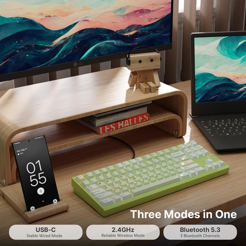 - Multi-Device Connection: ND TKL gaming mechanical keyboard provides three connection methods, including BT5.3, 2.4GHz wireless mode, and USB-C wired mode. It can switch between them easily by FN and key combination keys. No limits about your keyboard connection to meet the needs of work, gaming, and study
