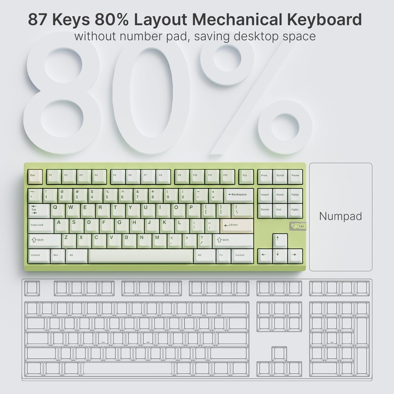 - Quickly Disassembled & 2 Mounting Systems: The ND TKL 80% percent keyboard adopts screwless quick assembly structure, using the ball catch system, Can be quickly and easily disassembled and assembled. 2 Mounting Systems: Silica Gel Particle Mount, Elastic Silicone Mount. 2 different mounting systems give you a different typing experience
