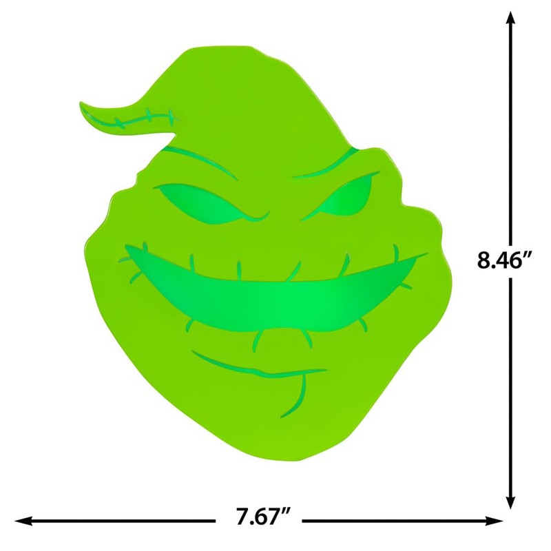 Fans of The Nightmare Before Christmas will love this Oogie Boogie wall light. Styled in the shape of Oogie Boogie's head, this light is uniquely designed with cutouts that project beams of light in all directions. Outfitted with green LED light, Oogie Boogie Radiant Shadows makes a spooktacular addition to indoor Halloween decorations. Includes built-in hooks for hanging.