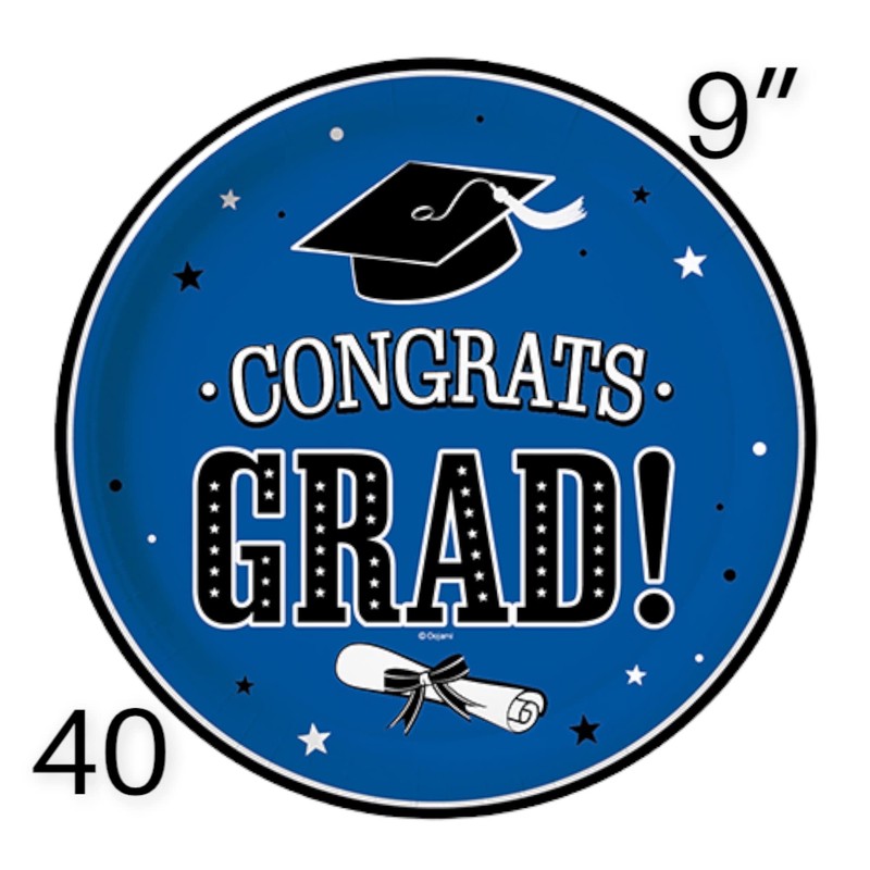 Oojami 80 pcs Graduation Plates Includes 40 Dinner Plates and 40 Dessert Plates Graduation party supplies class of 2024 dinnerware decoration (Blue)