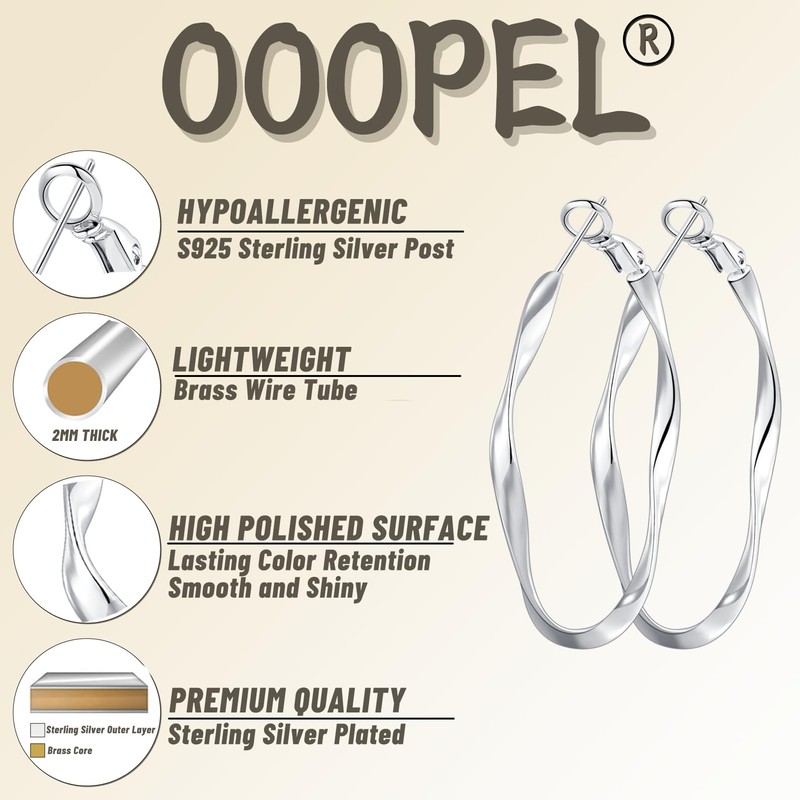 OOOPEL Sterling Silver Hoop Earrings for Women Lightweight Hypoallergenic Large Silver Hoop Earrings for Women 30MM 40MM 50MM 60MM