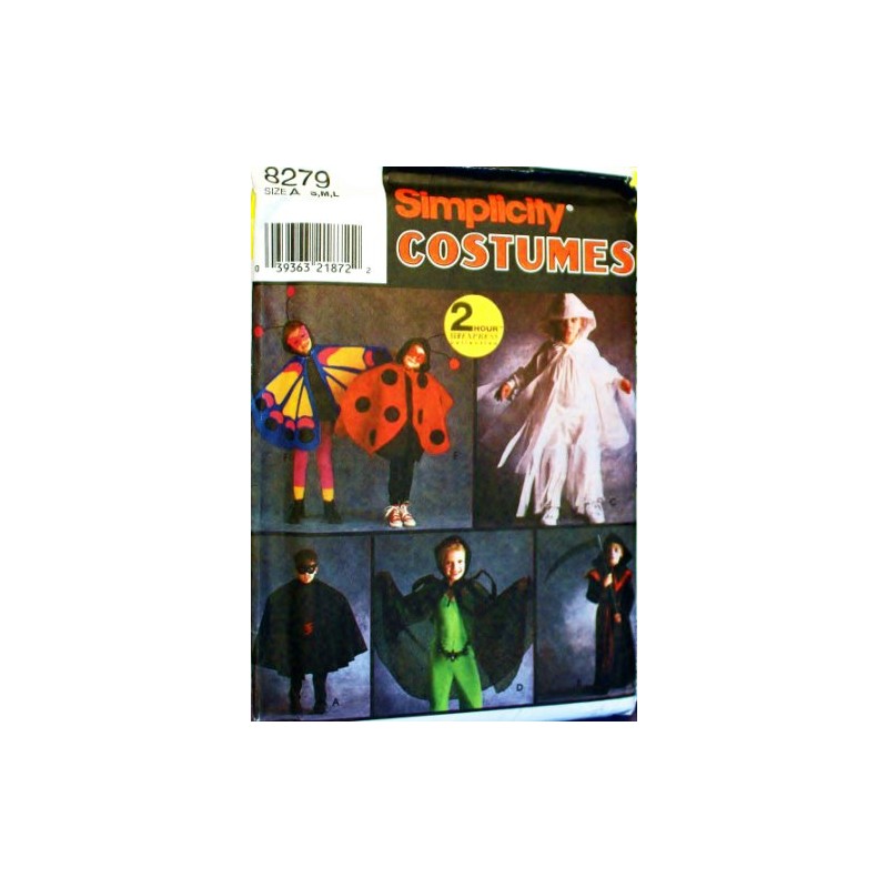 OOP Simplicity Costume Pattern 8279. Boys & Girls Szs 2/4, 6/8, 10/12 Super Hero, Grim Reaper, Butterfly & Lady Bug Costumes