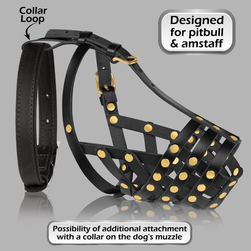 - UNIVERSAL FIT FOR LARGE BREEDS: designed for a perfect fit, this leather muzzle is great for pit bulls, amstaffs, staffordshire terriers