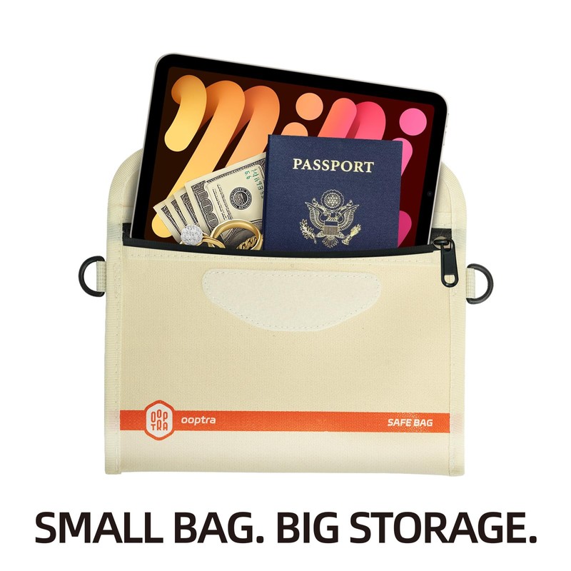 OOPTRA Fireproof Document Bag (Beige) – Waterproof Zipper – Lightweight & Portable – for Home, Office & Travel – Holds Files, Cash, Passport, Valuables – Fire & Water Resistant – with External Buckle