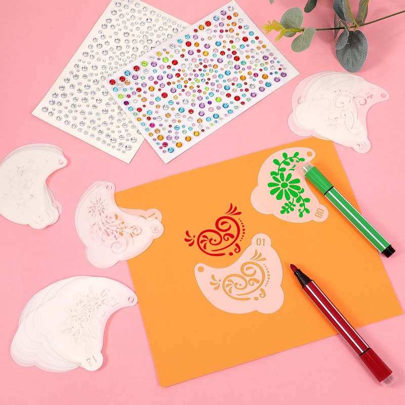 - 💎Colorful Adhesive Gems Stickers: The package also includes 642 pieces of colorful and sparkly adhesive jewel stickers to add glamour to your face and body art. These stickers are perfect for adding glamour to face and body art, DIY crafts, and everyday life.