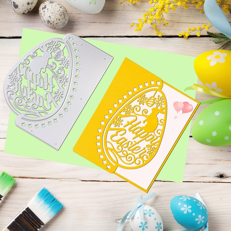 OOTSR Easter Cutting Dies for Card Making, Happy Easter Die Cuts, Egg Embossing Tool Stencil Template Mold DIY Album Paper Card Craft Die for Scrapbooking Decor