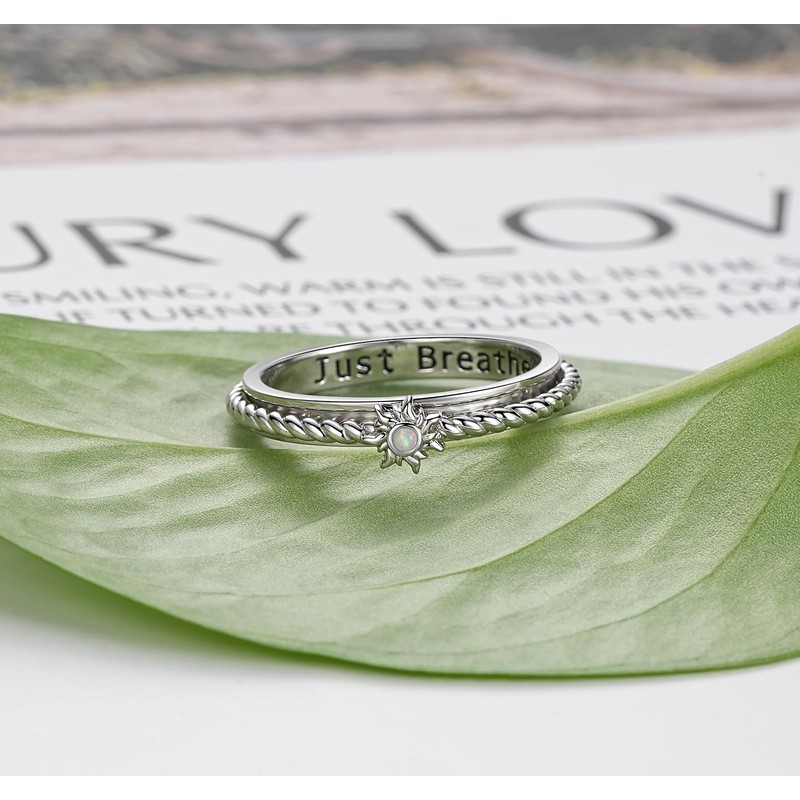 - Anxiety Reliever Jewelry Design Ideal: Delicate opal sun spinner ring engraves Inspirational words: Just Breathe. The anxiety ring is special designed for who constantly fidgets, the center band can be spun manually, it is a small but great anxiety reliever, can provide you free from anxiety and relieve stress
