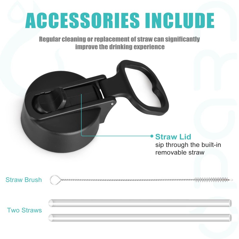 - EASY TO DRINK -- The spout with a straw plugged can be easily flipped up and down, and the straw can be easily removed for cleaning(a straw brush is included). Besides, there is an extra straw is included as a replacement.