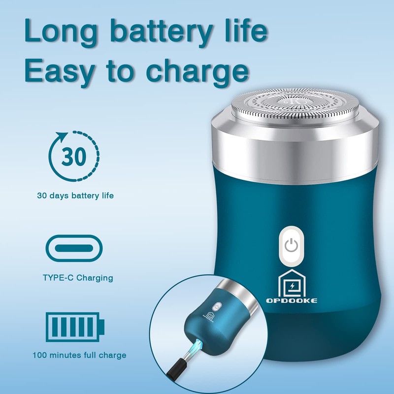 Opdooke Mini Electric Razor,Wet Dry Electric Shavers for Men Women,30 Day Battery Life,Powerful Men's Shaver Used for face Chest Leg Shaving,Travel Size Toiletries for Travel Car Home,Blue
