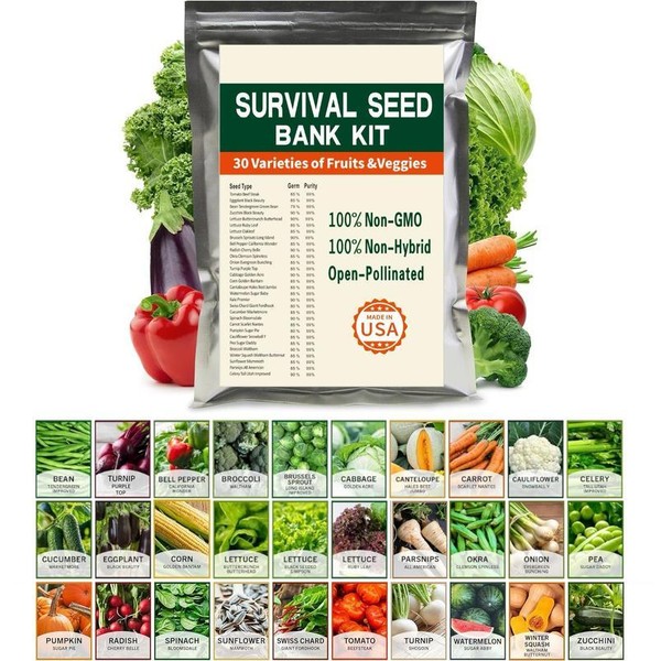 Open Seed Vault 30,000 Non GMO Heirloom Vegetable Seeds - 30 Variety Pack for Gardening, Survival Gear, and Emergency Supplies Kit-seeds gift