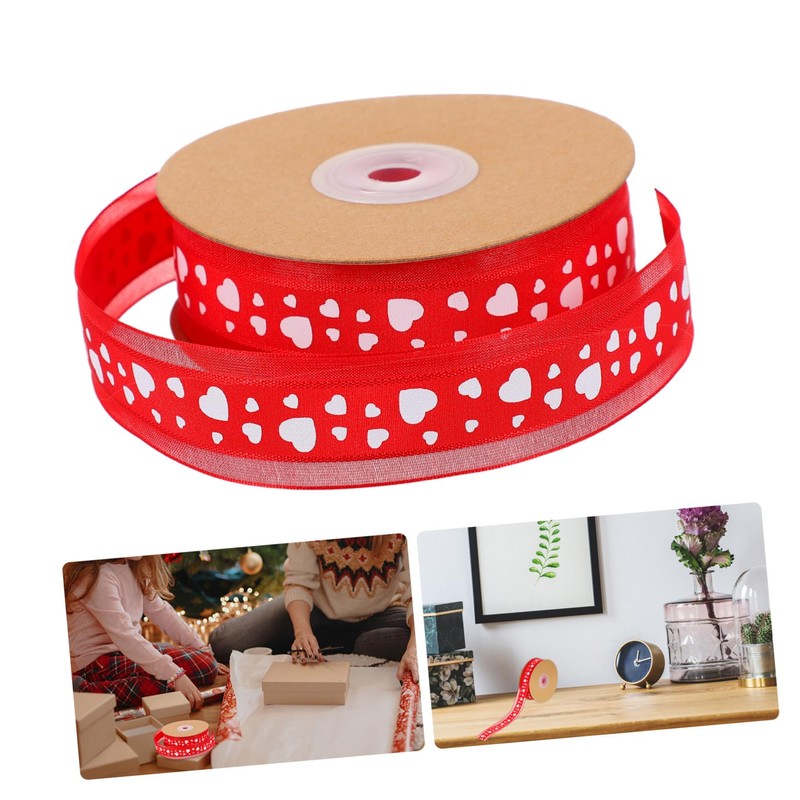 Valentinstagsband zum Binden einer schönen Schleife für jedes Wickeltuch, Blumenarrangements, saisonale Dekoration und mehr. Band zum Basteln. Dieses Produkt ist ein exquisites Band mit Liebesmuster, hergestellt aus Polyester-Materialien, bequem und hervorragend in der Verarbeitung Textur