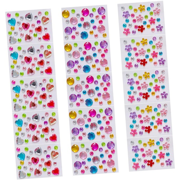 Operitacx 15 Blätter Kinderschmuck tragbare Juwelenaufkleber Funkelnde Aufkleber Bling-Aufkleber aus Kunststoff Mehrzweckaufkleber aus Kunststoff Karikatur Edelstein-Aufkleber Plastik