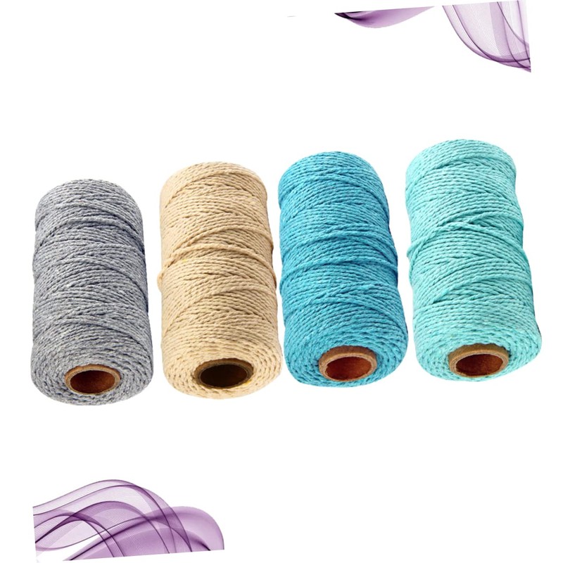 Operitacx 4 Pack Braided Cotton Rope Rolls 2mm Thick Multi Purpose Wrapping Rope for DIY Camping