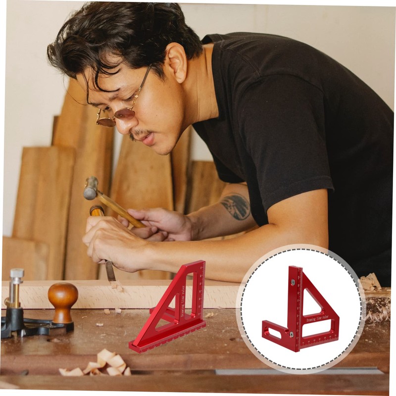 Operitacx 45 90 Carpentry Ruler Angle Combination Square Straight Bevel Gauge Carpenter Woodworking Triangular Rulers for Woodworkers Measuring Centimeters Metal Square Red Aluminum Alloy