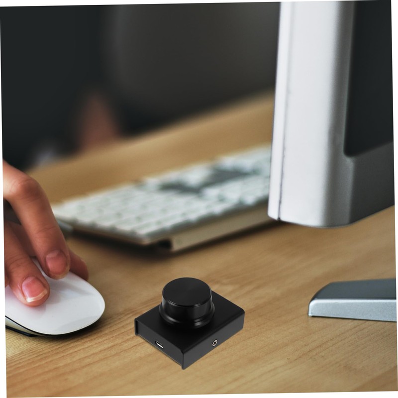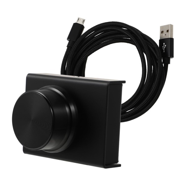 - The USB volume control consists of a metal housing and a rotating shaft.