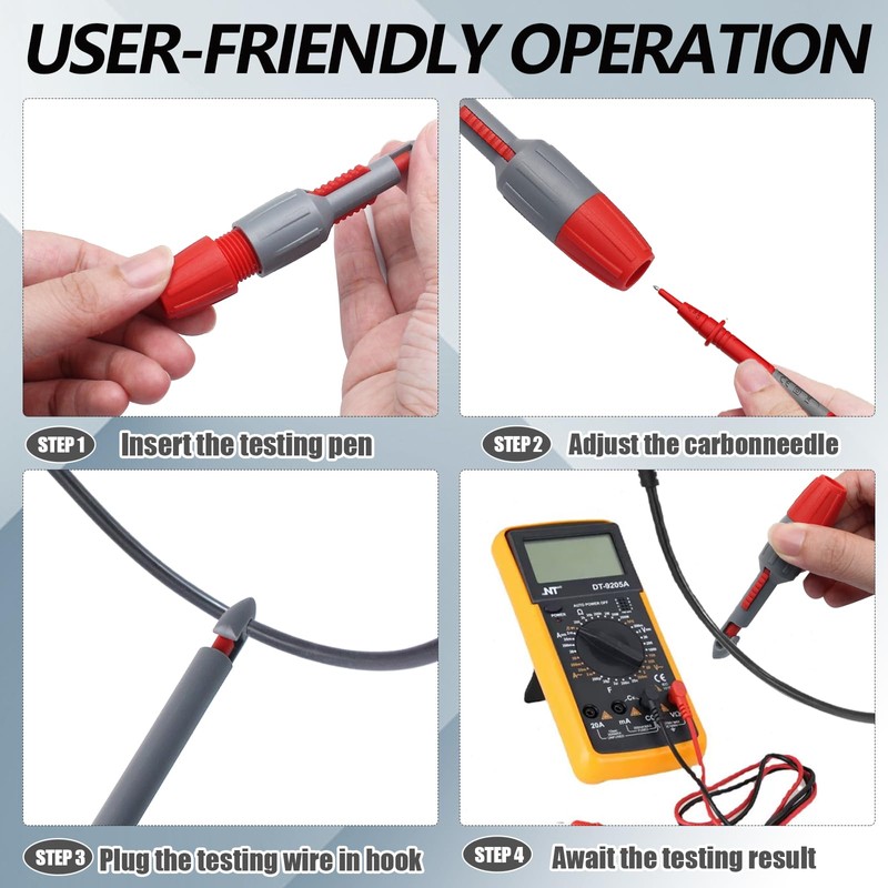 • User-Friendly Operation: With a simple adjustment of the spring clamp and quick insertion of the multimeter probe, you can effortlessly measure voltage and seal tiny holes in insulation for efficient testing.