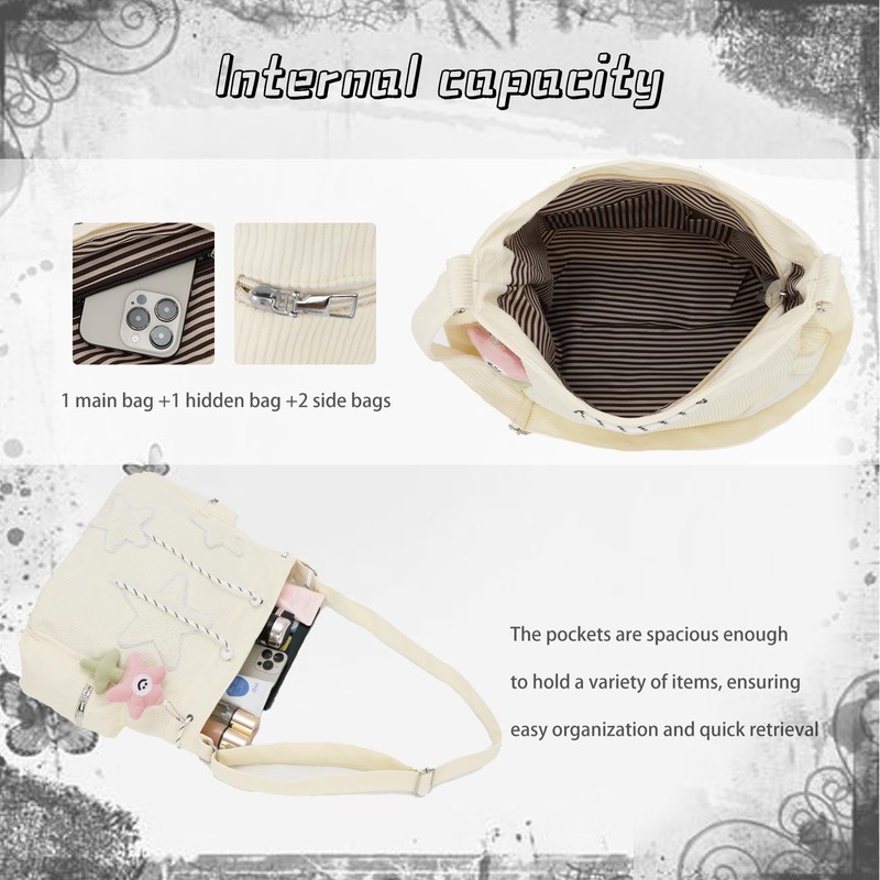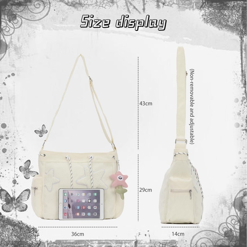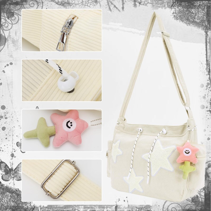 OPLERT Star Tote Hobo Bag for Women Large Cord Crossbody Bag Y2K Cute Tote Bags Aesthetic Messenger Handbag, beige