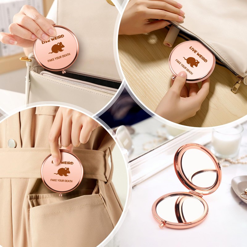 - Double-Sided Compact Mirror: This personalized compact mirror is made of stainless steel, with a regular mirror on one side and a magnifying mirror on the other. Crafted for durability, ensuring your mirror lasts through years of use. Measuring 2.56 x 2.56 inches, this special travel mirror is easy to carry in her purse, pocket, or bag,take up only a little space, and make up anytime, anywhere.