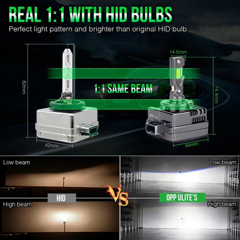 - 【Real 1:1 with HID Bulbs】 Our d3s led bulbs are 1:1 design with hid bulb, same beam design as the hid bulb, the ultra-thin led chip interval provides a wider angle and farther range light on the road. No blinding and dazzles oncoming drivers, and give your safe driving experience.