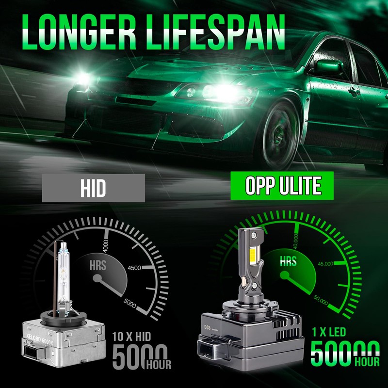 OPP ULITE D3S Led Headlight Bulbs, Upgraded Cooling, Canbus Error Free 100% Plug & Play Compatible with Original Ballast Replacement Bulb, 70W 10000LM 6500K Cool White, 2pc Pack