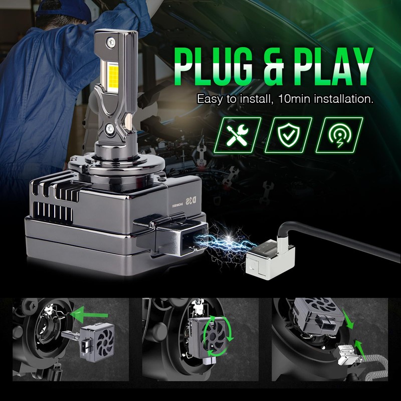 - 【Plug & Play D3S Led Bulbs】 This wireless d3s led headlight bulbs plug & play fit for original car ballast. Don't need to make any changes to the line. Don't damage the original car AFS and auxiliary functions, 100% canbus error free.