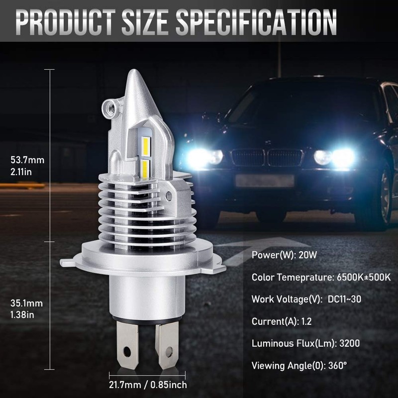 - ★【1:1 Design & No Polarity, Easy Installation】Mini Design. 1: 1 halogen bulb size design. All-in-one conversion kit. Compatible fitment size and Non-polarity design, Easy installation, just Plug & Play. Compatible with 99% of the vehicle system, fit for most H4 vehicles.