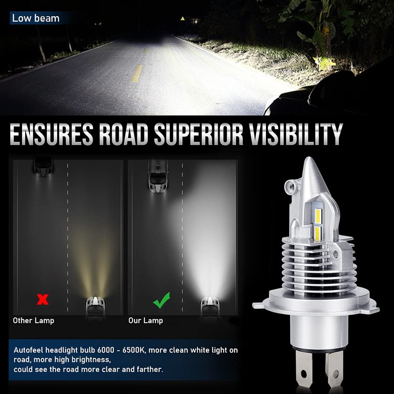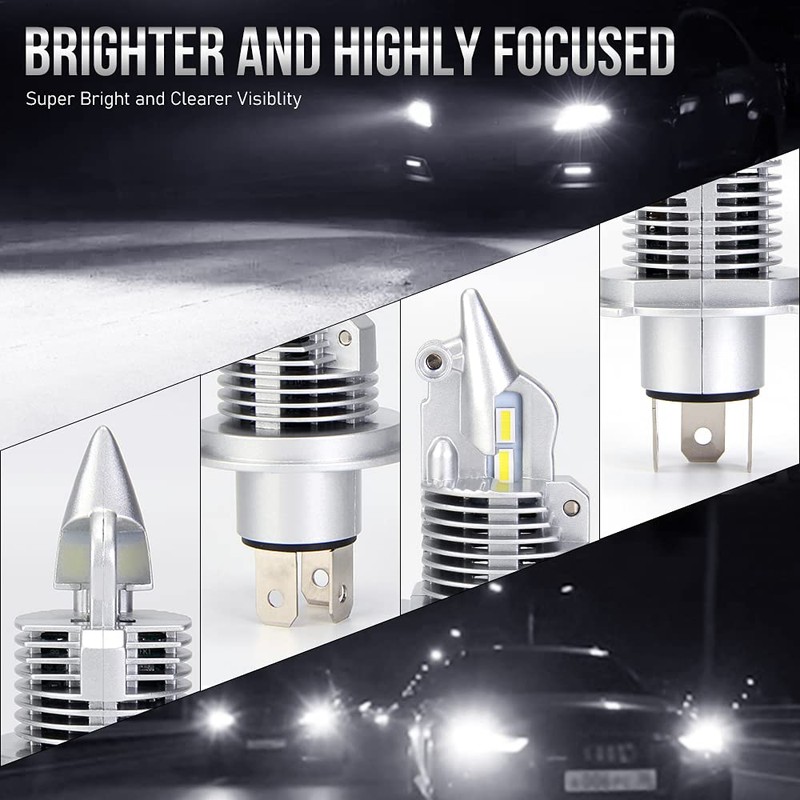 - ★【POWERFUL LIGHTING PERFORMANCE】: H4 led bulbs use the best customized led auto grade chip, provides clear beam and longer lighting distance. Super-focused beam pattern, no dark spots in lighting, and will not affect the field of view of oncoming cars.
