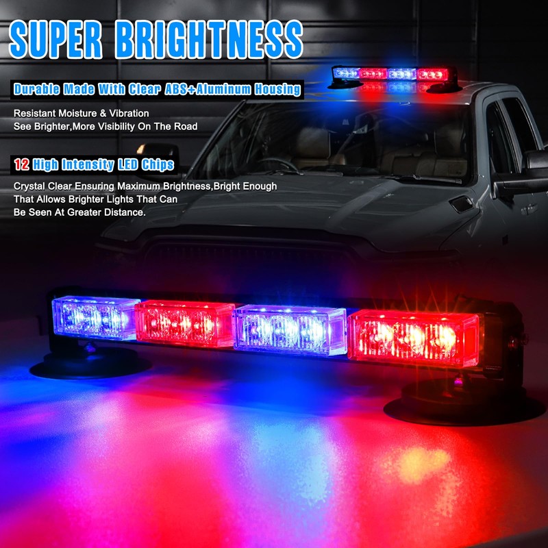 - 2.【Super Bright Visibility】LED emergency strobe light bar adopts with 12pcs high intensity led chips with clear crystal lens.To provide maximum visibility.Be seen day or night,increasing the driving safety.