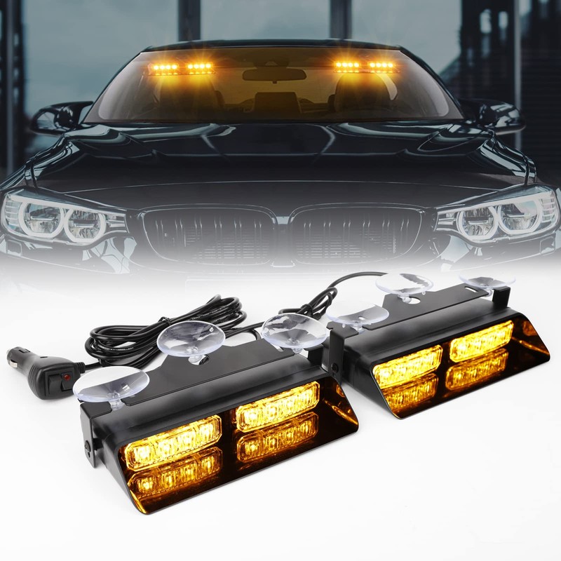 - 1.【Super Bright LED Windshield Strobe Light】Amber led dash strobe light equipped with 16 high intensity led chips with clear crystal PC lens,which projects brilliantly bright illumination during the day and nighttime,allowing other drivers to notice your presence and ensuring your safety.