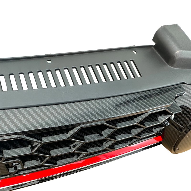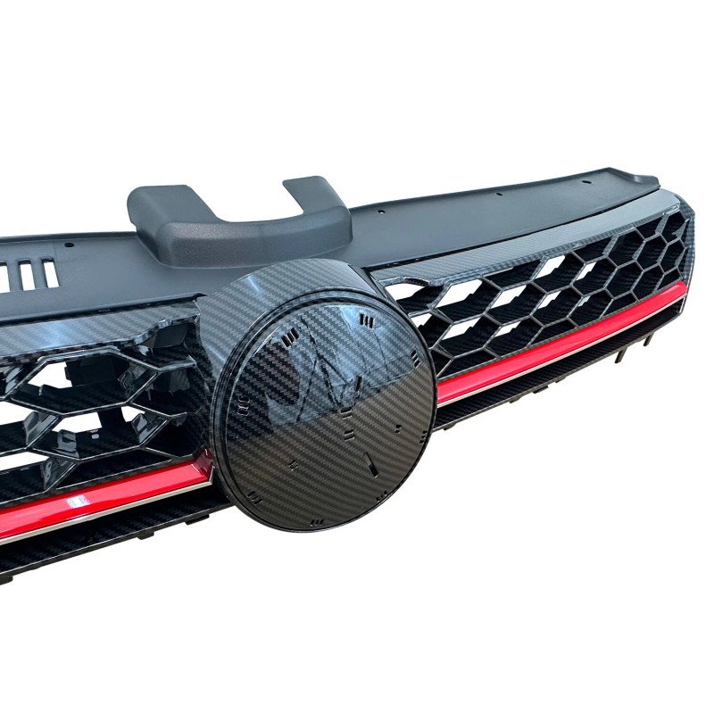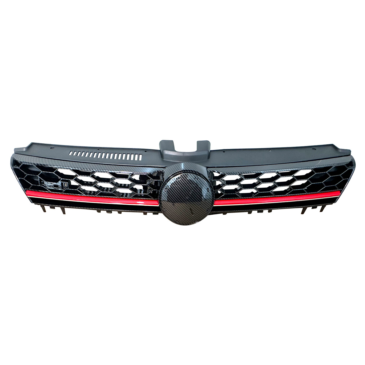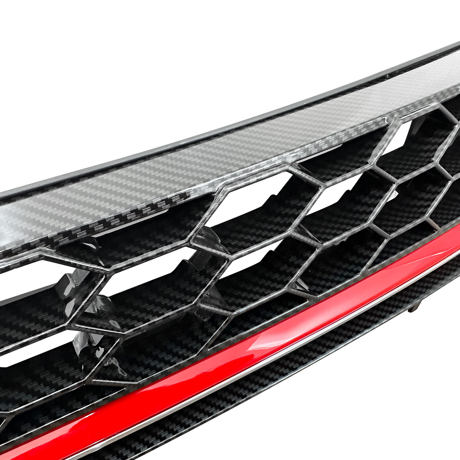 OPT Front Grille Fit 15-16 VW MK7 Golf GTI Honeycomb w/ Red Trim Carbon fiber print